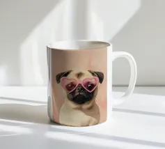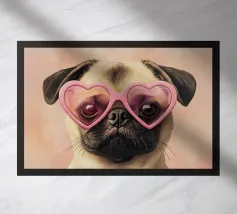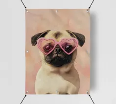 Un simpatico carlino con occhiali a forma di cuore e dettagli rosa irradia gioia ed è l'animale domestico perfetto per i bambini. Il suo viso affettuoso e le sue buffe orecchie lo rendono il compagno ideale per i piccoli avventurieri!