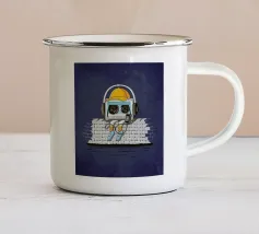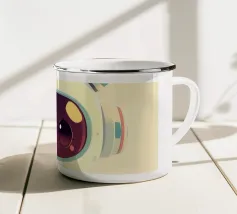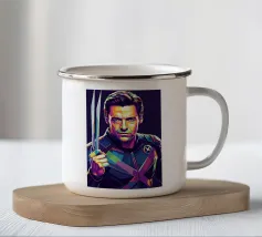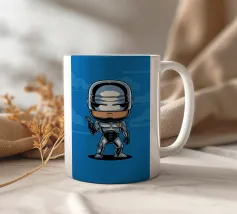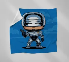 Un personaggio dei cartoni animati con un'armatura metallica si staglia su uno sfondo blu con nuvole stilizzate. Il personaggio impugna un'arma futuristica, evidenziando il suo aspetto robotico.