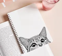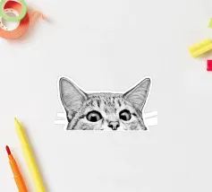 Un gatto meme che sbircia dal bordo di un bancone con grandi occhi spalancati