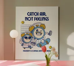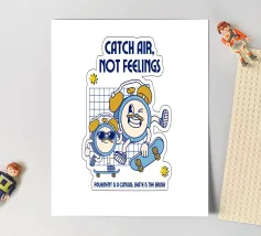 Fate una dichiarazione con questo disegno retrò vintage dei cartoni animati che rappresenta la libertà, il movimento e il divertimento! Due orologi retro cartoon viaggiano sui loro skateboard e ci mostrano che il tempo può passare, ma è il momento che conta. La scritta "Catch Air, Not Feelings" sottolinea il messaggio: vivete il momento, godetevi la vita e non lasciate che i sentimenti vi fermino - l'importante è prendere aria e vivere il momento!
