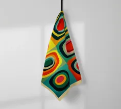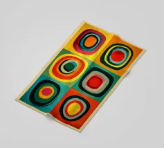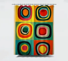 Questa vibrante composizione celebra l'epoca d'oro del design con forme organiche e audaci contrasti di colore. L'astrazione kandinskyana incontra l'ottimismo degli anni '70: ogni quadrato è un esperimento visivo diverso di armonia e tensione. La calda tavolozza vintage e le forme circolari fluide creano una profondità meditativa. Perfetto per gli amanti dell'autentica estetica retrò. Per ambienti contemporanei con personalità. Pura storia del design sulla parete o su altri prodotti.