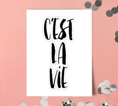 Abbracciate l'imprevedibilità della vita con la nostra elegante stampa tipografica "C'est La Vie". Questa intramontabile frase francese, elegantemente resa con una fluida scritta nera ad acquerello su uno sfondo bianco, aggiunge un tocco di raffinatezza parigina a qualsiasi spazio. Le pennellate d'arte catturano l'essenza di questa filosofia spensierata, ricordandovi di seguire i ritmi della vita. Perfetto per il soggiorno, l'ufficio o qualsiasi altro luogo in cui sia necessario ricordare con stile di seguire la corrente. Disponibile su diversi prodotti, questo design versatile è un regalo ideale per i francofili e gli spiriti liberi.