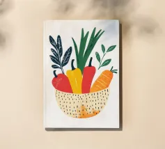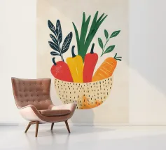 Date alla vostra casa un'atmosfera naturale e ricca di vitamine con questa vivace illustrazione. Verdure colorate in un cesto strutturato creano un'atmosfera calda e rilassante. Perfetto per una cucina o uno spazio abitativo di grande ispirazione.