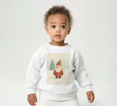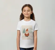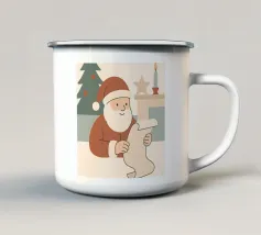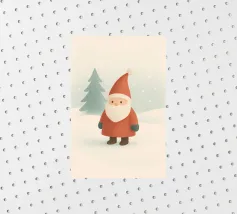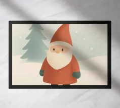 Un simpatico Babbo Natale di ispirazione nordica in piedi in un paesaggio innevato. I toni tenui, le sfumature morbide e le forme semplici catturano il calore del design natalizio scandinavo. Ideale per pareti festive, stanze di bambini e temi natalizi minimalisti.