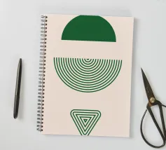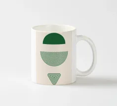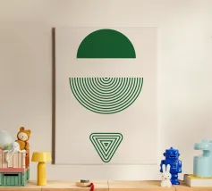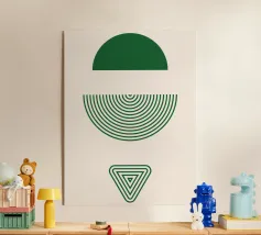 Questo design minimalista colpisce per le sue precise forme geometriche in un elegante verde su uno sfondo color crema. La chiara composizione di semicerchio, linee concentriche e forma triangolare trasmette modernità ed estetica senza tempo. Perfetto per murales, cuscini, tazze o cover per cellulari, questo motivo si adatta perfettamente a spazi abitativi moderni e minimalisti. Un regalo stimolante per gli amanti dell'arte che apprezzano le forme pulite e il design elegante.