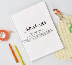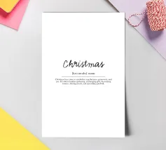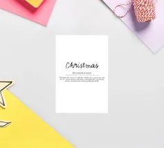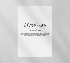 Pezzo tipografico minimalista che definisce il Natale come un momento di unione, generosità e gioia. Evidenzia lo spirito delle riunioni di famiglia, lo scambio di regali, la decorazione delle case, la condivisione dei pasti e la diffusione della buona volontà.