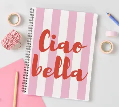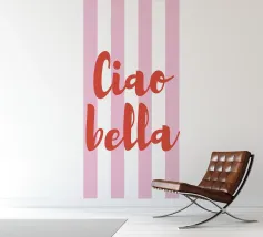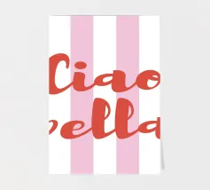 Decorazione con citazioni italiane, decorazione femminile per ambienti, estetica a righe rosa, stampa Ciao Bella, arte tipografica femminile, design di frasi romantiche