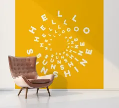 Un'opera d'arte tipografica radiosa ed edificante che presenta la frase "Hello Sunshine" in un carattere sans-serif bianco in grassetto. Disposto in modo circolare ripetuto ed espanso da piccolo a grande sui bordi esterni, su uno sfondo giallo super luminoso e caldo, questo disegno incarna il calore, l'ottimismo e la gioia dei semplici piaceri della vita. Un pezzo perfetto per illuminare qualsiasi spazio e ricordare di abbracciare i piccoli momenti che portano felicità.