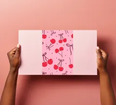 Ciliegie, pois e papillon, motivo di design in tessuto senza cuciture