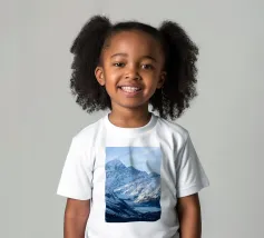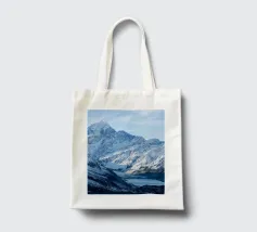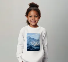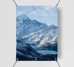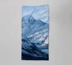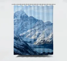 Cime innevate e lago Glacier, stampa fotografica della natura selvaggia