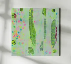 Tecnica mista con pittura acrilica, inchiostro ad alcool e manifesti di spettacoli circensi