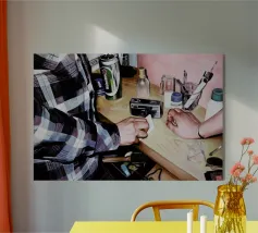 Jérôme Romain vive di attimi fuggenti, di comportamenti e sentimenti umani che spesso ci passano davanti in un attimo. Il pittore autodidatta di Montpellier, in Francia, fotografa scene come queste, ma poi ne fa qualcosa di nettamente diverso. Le rifonde minuziosamente come dipinti a olio su tela, creando rappresentazioni iper-realistiche di scatti standard di selfie, in uno stile ispirato a Caravaggio e ad altri maestri classici. Le sue immagini conferiscono un senso di storia agli ambienti più contemporanei e portano la tecnica della pittura a olio direttamente nello spirito moderno.