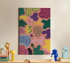 "Shapes dance, colors collide and modern abstraction is the art of energy, balance, and imagination."