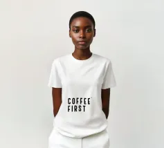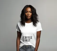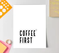 Prima il caffè. Espressione del caffè. Tipografia in nero e bianco (trasparente). È possibile cambiare il colore di sfondo. Poster tipografico minimalista.