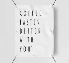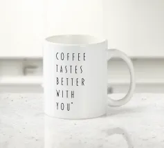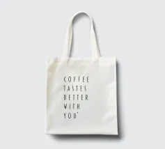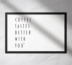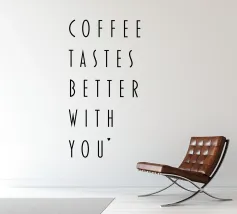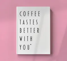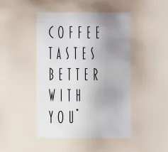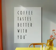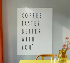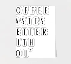 Il caffè è più buono con te. Espressione d'amore, caffè e San Valentino. Tipografia in nero e bianco (trasparente). È possibile cambiare il colore dello sfondo. Poster tipografico minimalista.