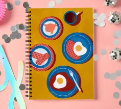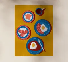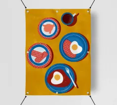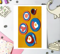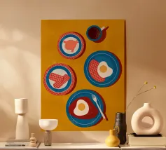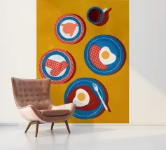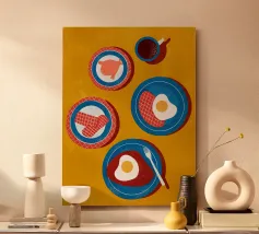 L'illustrazione "Breakfast Food" presenta una varietà di appetitosi piatti per la colazione, dalle uova strapazzate ai deliziosi pancake.