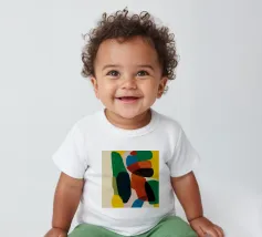 Una sofisticata composizione astratta con un collage di forme organiche e fluide nei toni terrosi del verde, del nero, dell'arancione e del beige, che creano un senso di movimento naturale.