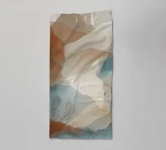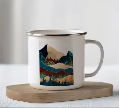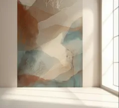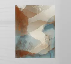 Questo sereno dipinto di paesaggio cattura la bellezza di dolci colline e montagne lontane. I colori tenui e le pennellate delicate creano un'atmosfera pacifica e rasserenante.