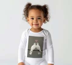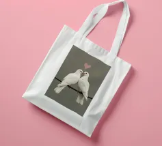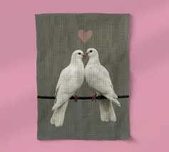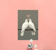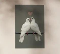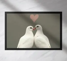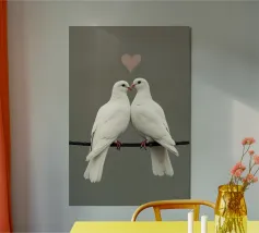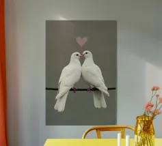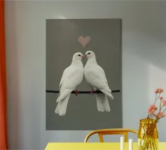 Celebrate la bellezza dell'amore e del legame con "Love Doves", un'opera d'arte minimalista, morbida ed elegante, con due colombe bianche che si toccano il becco sotto il simbolo di un delicato cuore. Su uno sfondo pulito e tenue, questo disegno irradia pace, purezza e tenerezza, rendendolo un pezzo perfetto per gli spazi interni romantici, moderni o tranquilli.