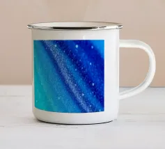 Questa opera d'arte in resina presenta un intricato turbinio di colori e texture vibranti, con blu profondi, ricchi ori e una serie di accenti luminosi. I dettagli evidenziano la maestria dell'artista.