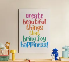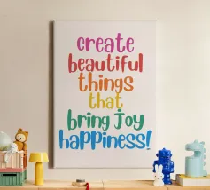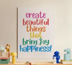 Questo poster ispiratore ricorda che l'energia creativa genera pura gioia di vivere. Disegnato con i colori dell'arcobaleno e una tipografia giocosa, è un vero e proprio richiamo visivo per lo studio, l'ufficio o la stanza dei bambini, perfetto per chi progetta con il cuore e ama le vibrazioni positive.