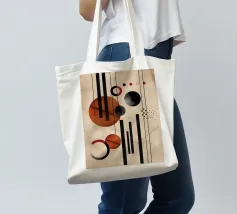 Questo design di grande effetto combina forme geometriche con una tavolozza di colori caldi, come le tonalità della terra, il nero e il rosso. La combinazione di linee verticali, cerchi ed elementi curvi crea un equilibrio armonioso tra struttura e dinamismo. Perfetto per murales, tazze, custodie per cellulari o cuscini: un must per gli amanti dell'arte moderna che vogliono aggiungere un tocco artistico e senza tempo alla propria casa o alla vita quotidiana.