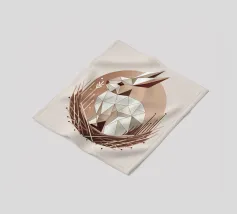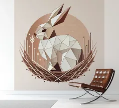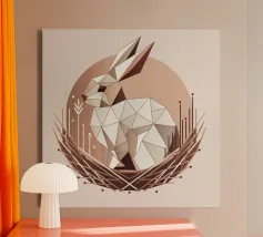 Un elegante motivo pasquale: un coniglietto geometrico siede in un nido ornato, incorniciato da delicati elementi naturali. I toni armoniosi del marrone e del beige conferiscono a questo disegno un aspetto elegante e naturale. Perfetto per decorazioni pasquali, motivi primaverili e progetti moderni con un tocco di natura.Coniglietto geometrico con linee e sfumature eleganti