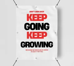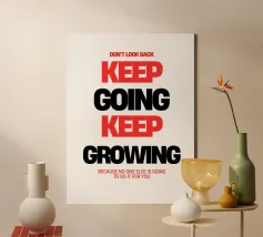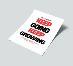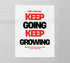 Questo design grafico audace e motivazionale ci ricorda di rimanere concentrati sui nostri obiettivi e di continuare ad andare avanti. I colori contrastanti e la tipografia decisa creano un messaggio visivo potente che ci ispira ad agire.