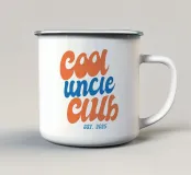 Un badge tipografico per lo zio con stile, cuore e umorismo: il lettering "Cool uncle club" combina due colori - arancione per "cool" e "club", blu per "uncle" - e crea così un equilibrio visivo tra calore e affidabilità. Sotto, nella stessa tipografia blu: "EST. 2025" - come un timbro di fondazione per una nuova era di "uncleliness".