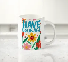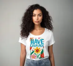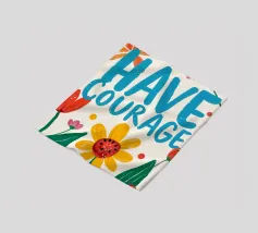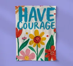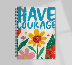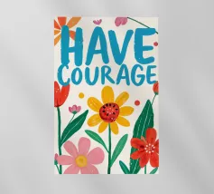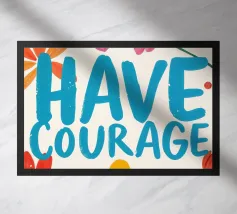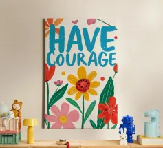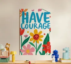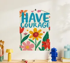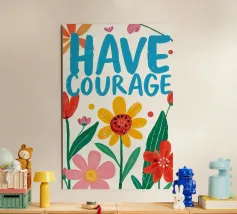 Un poster incoraggiante dai colori vivaci! La scritta "Have Courage", abbinata a motivi floreali giocosi, dona gioia di vivere e forza a qualsiasi parete, ideale per la camera dei bambini, l'ufficio o come regalo d'ispirazione. Questo disegno è un promemoria quotidiano per essere coraggiosi.