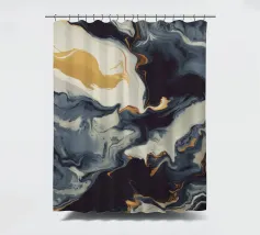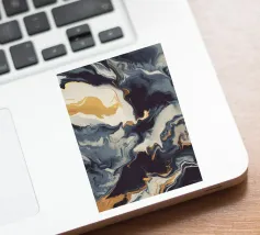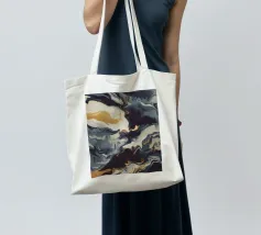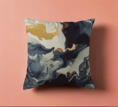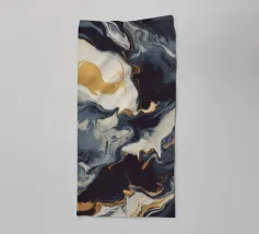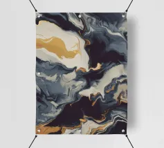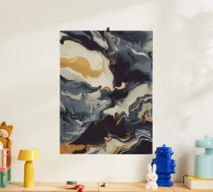 Un'opera d'arte astratta profonda e ipnotica con motivi vorticosi di viola scuro, blu e grigio, illuminati da striature e macchie d'oro scintillante. La composizione evoca la vastità e il mistero di una nebulosa cosmica.