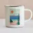 Un paesaggio minimalista di una spiaggia o di una riva serena accanto a un deserto con un cactus. Le forme semplici e la tavolozza di colori rilassanti creano una scena tranquilla e moderna dove l'acqua incontra la sabbia.