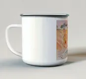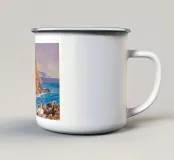 Scogliere frastagliate e color cremisi incontrano un mare turchese, il drammatico contrasto di colori caldi e freddi cattura la bellezza cruda e potente di una costa selvaggia sotto un cielo luminoso.