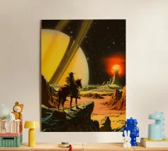 Cosmic Cowboy fonde lo spirito di frontiera con il fascino sconfinato dello spazio. Questo pezzo reimmagina il classico cowboy come un pioniere cosmico, che esplora i territori inesplorati dell'universo. Riflette i temi dell'esplorazione, della solitudine e della spinta umana a cercare l'ignoto.