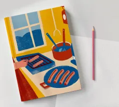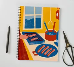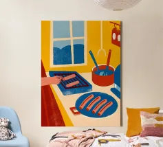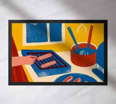 L'illustrazione "Cucinare le salsicce" mostra la cottura delle salsicce in uno stile attraente e appetitoso.