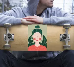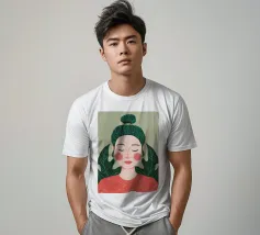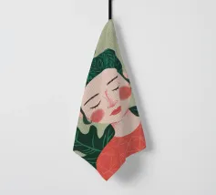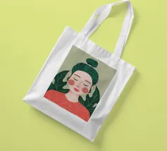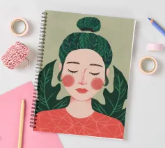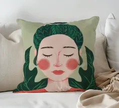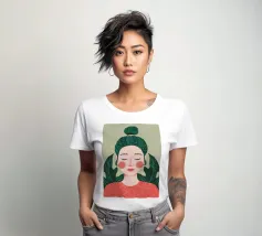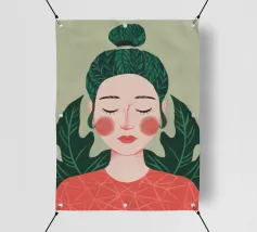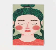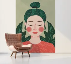 Ritratto di una donna con gli occhi chiusi in un momento di serena cura di sé, con fiori tra i capelli. La composizione è un bellissimo, pacifico e delicato promemoria dell'importanza della tranquillità e dell'amore per se stessi.
