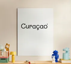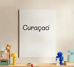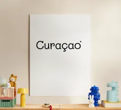 Adoro andare a Curaçao, un'isola tropicale dei Caraibi. Amo viaggiare in tutto il mondo. Adoro visitare città, montagne e deserti. Tipografia in nero e bianco (trasparente). È possibile cambiare il colore dello sfondo. Poster tipografico minimalista di un viaggiatore.