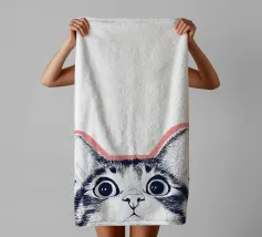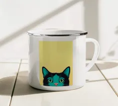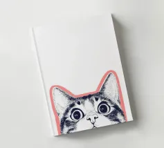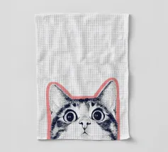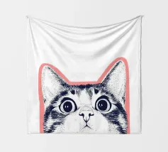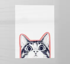 Questa divertente illustrazione mostra la mezza faccia di un gatto in un disegno rosa, bianco e nero su sfondo bianco. Gli occhi curiosi e le orecchie appuntite incarnano la natura giocosa degli animali domestici. Un'opera d'arte minimalista che cattura perfettamente l'amore felino!