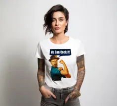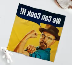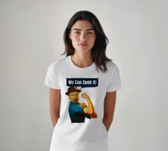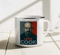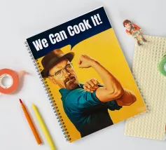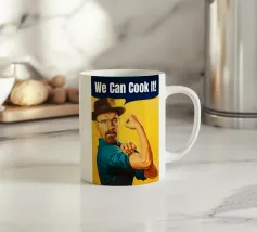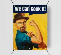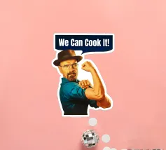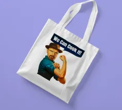 Un'opera d'arte "We Can Cook It!" di ispirazione vintage con Walter White di Breaking Bad. Questo meme divertente e iconico unisce cucina, nostalgia della serie TV e umorismo da chef, perfetto per i fan della cucina di Heisenberg!