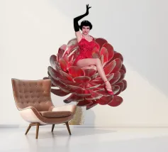 Cyd Charisse è stata una ballerina e attrice americana. Dopo essere guarita dalla poliomielite da bambina e aver studiato danza classica, Charisse è entrata nel mondo del cinema negli anni Quaranta. Qui è rappresentata mentre riposa su una pianta rosa.