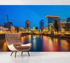 Düsseldorf, Renania Settentrionale-Vestfalia - Il porto dei media all'ora blu