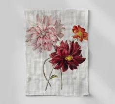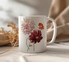 Mostra un vibrante bouquet di dalie in piena fioritura, disposte con delicata attenzione a forma, colore e luce
