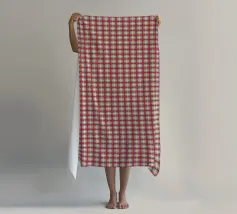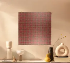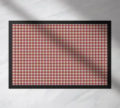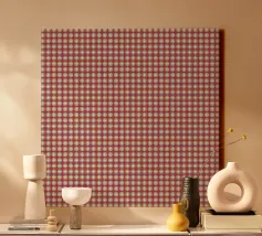 Un vivace motivo a scacchiera presenta una griglia ripetuta di rosso, blu e bianco, che crea un design geometrico accattivante. L'uniformità conferisce un senso di equilibrio e struttura.
