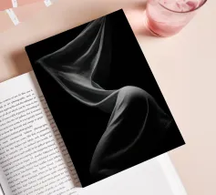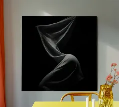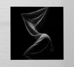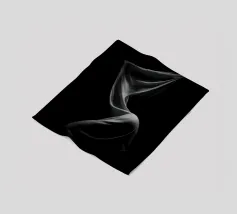 Un pezzo di tessuto galleggia, sospeso in un respiro invisibile. Questo poster cattura un momento tra movimento e immobilità, tra materia ed evanescenza. Un'opera grafica leggera che sublima poeticamente uno spazio.