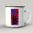 Una composizione astratta audace e drammatica con una forma organica nera su uno sfondo rosso vibrante con un piccolo accento blu. L'opera d'arte è potente, minimalista e di forte impatto grafico.
