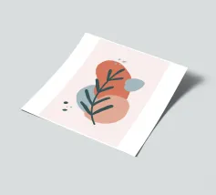 Forme astratte nei toni della terra creano una composizione minimalista, con un ramo verde scuro che taglia audacemente il centro. Le morbide tonalità del blu e della terracotta formano uno sfondo rilassante, esaltando l'atmosfera organica.