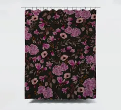 Motivo stravagante di fiori acquerellati nei colori viola scuro e nero.