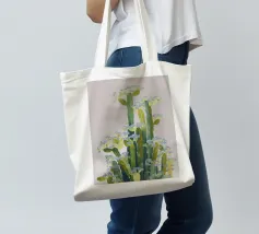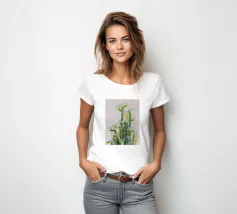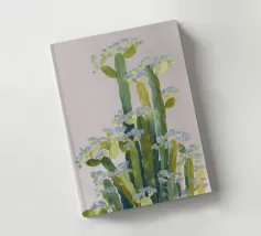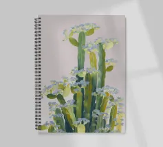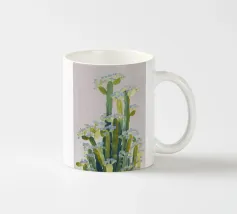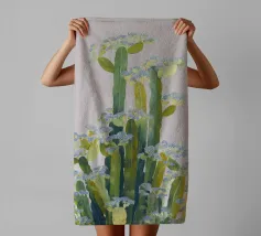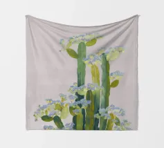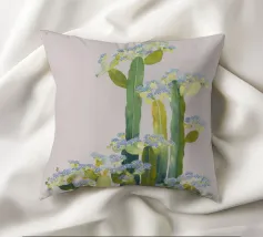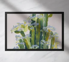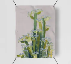 Questa delicata opera d'arte raffigura cactus verdi con fiori azzurri, dipinti in tenui colori pastello. La combinazione di toni morbidi di beige e verde conferisce al motivo un'atmosfera calda e naturale. Ispirato alla botanica del deserto, il risultato è un quadro vegetale minimalista con una leggerezza estiva.