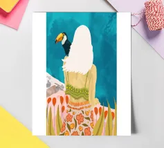 Longing boho bohemien eclettico acquerello posa tucano uccello uccelli animali domestici animali animale