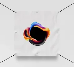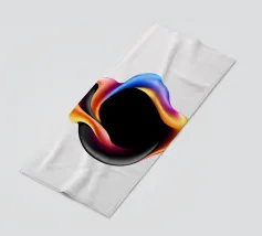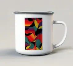 Quest'opera d'arte presenta forme vorticose nei colori vibranti dell'arancio, del blu e del nero, creando un effetto visivo accattivante che incuriosisce lo spettatore.